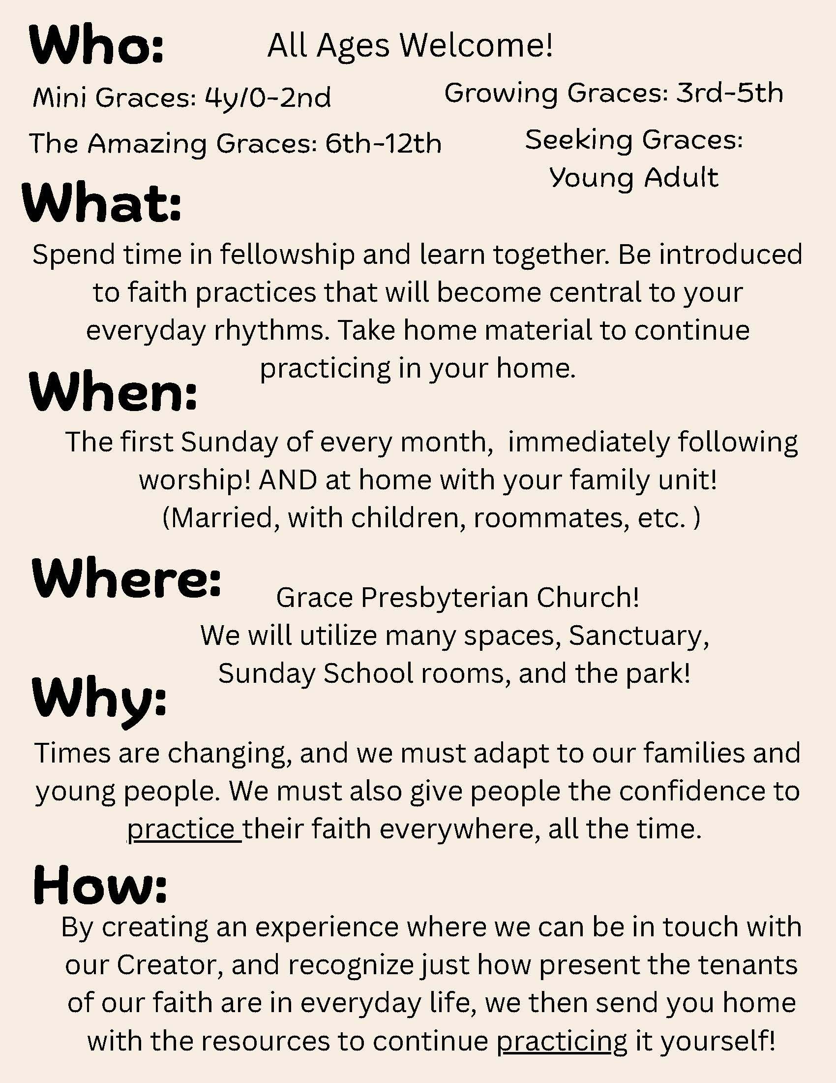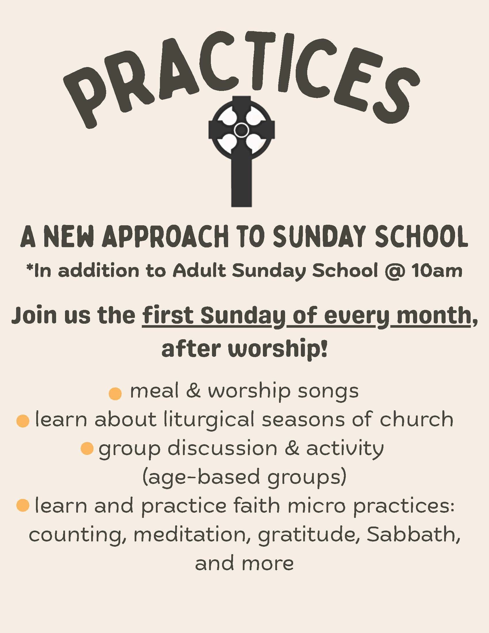 Traditional Worship is each Sunday at 11:00 AM, all meeting in the Sanctuary.