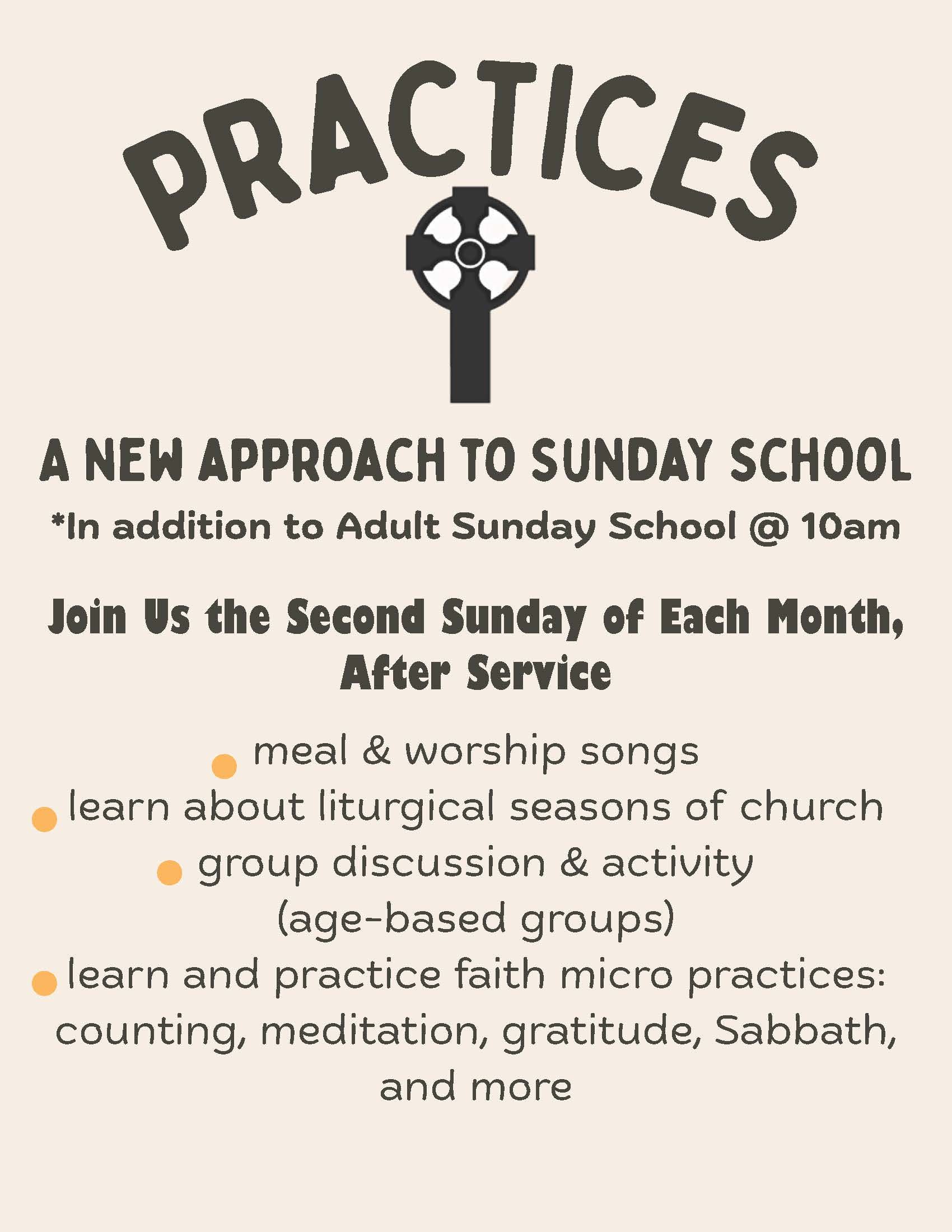Traditional Worship is each Sunday at 11:00 AM, all meeting in the Sanctuary.
